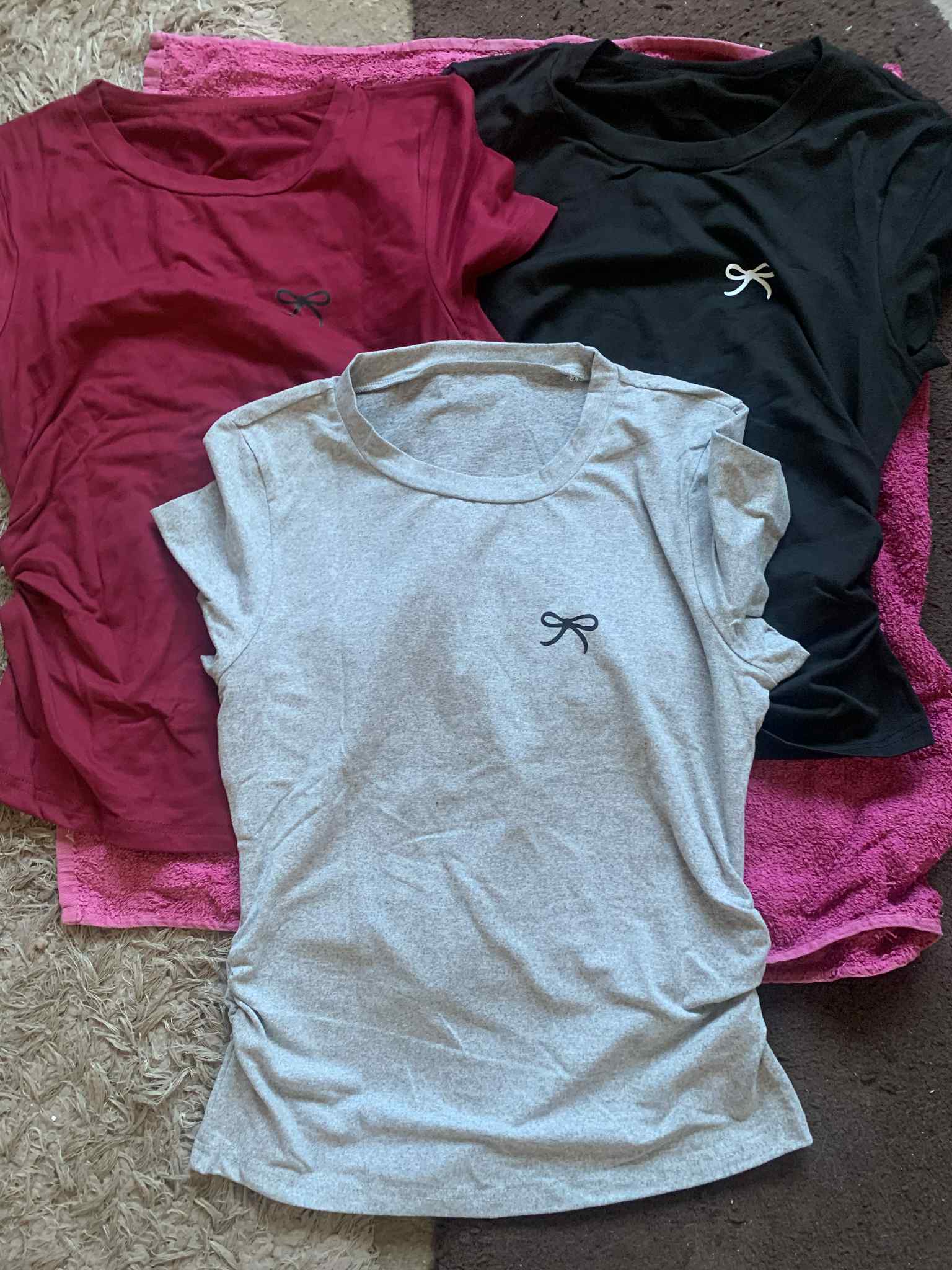 3pcs s' Pleated Round Neck Short Sleeve Bow Print