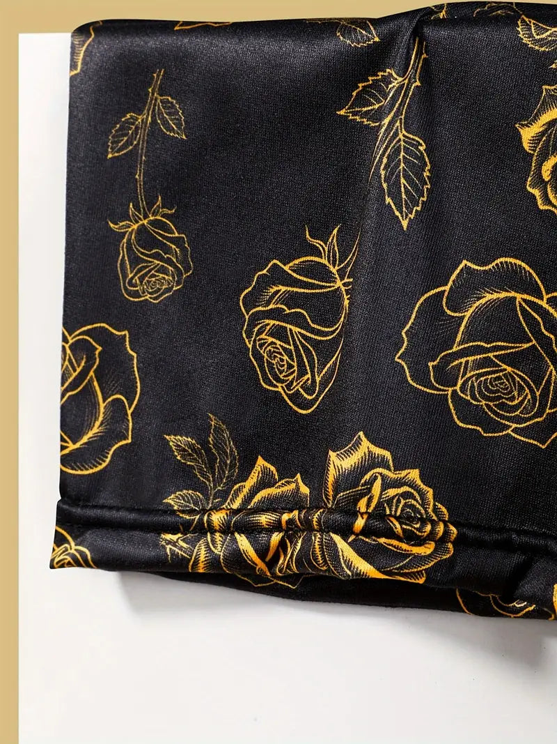 Rose Black Golden Print, Ice Silky Polyester, Comfortable & Breathable