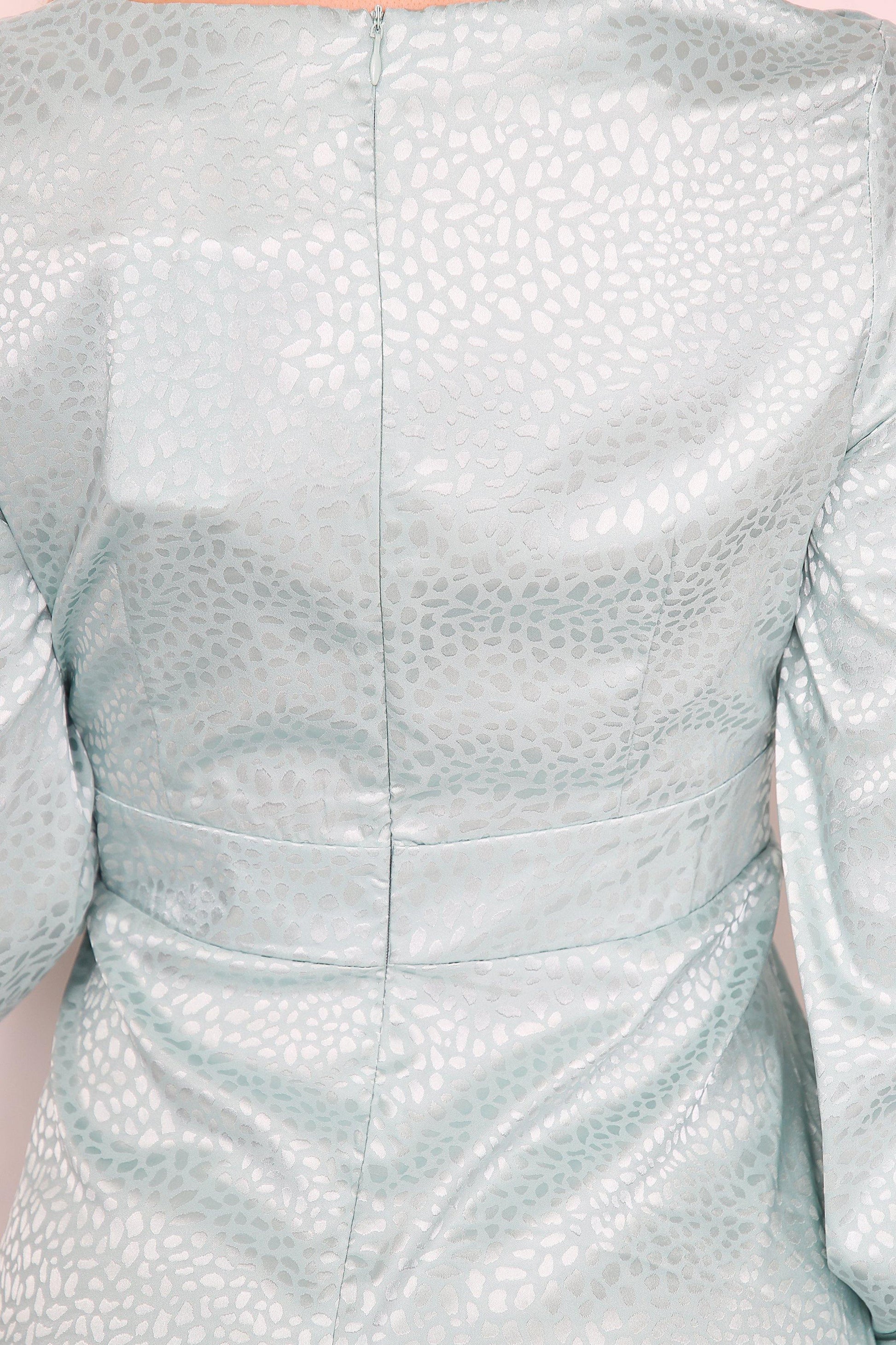 Baby Blue Satin Stitched Waist Mini Dress Long Sleeve Flowing Silhouette