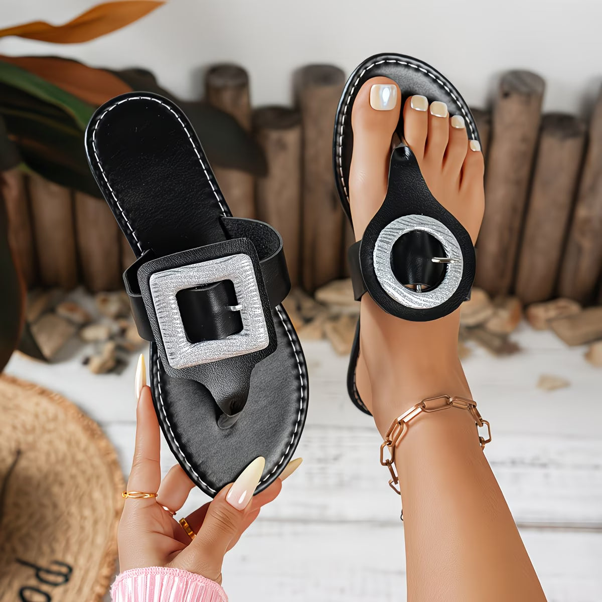 Classic Fashion Clip-Toe Ladies Brown Black Matching Flip-Flops