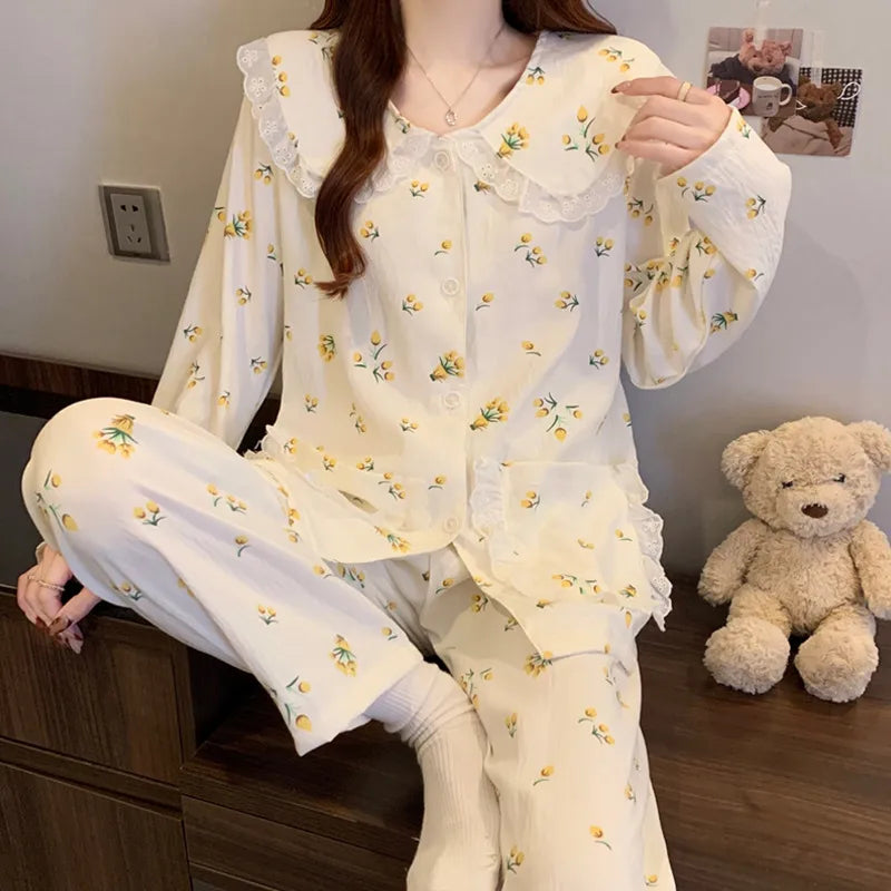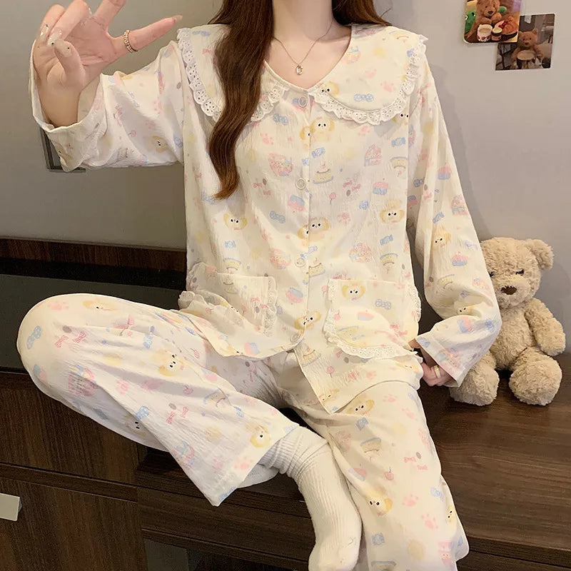 Cloud Cotton Long Sleeve Sleepwear Women's Spring Autumn Style Cute Doll Collar Home Clothes Breathable Casual Sleepwear