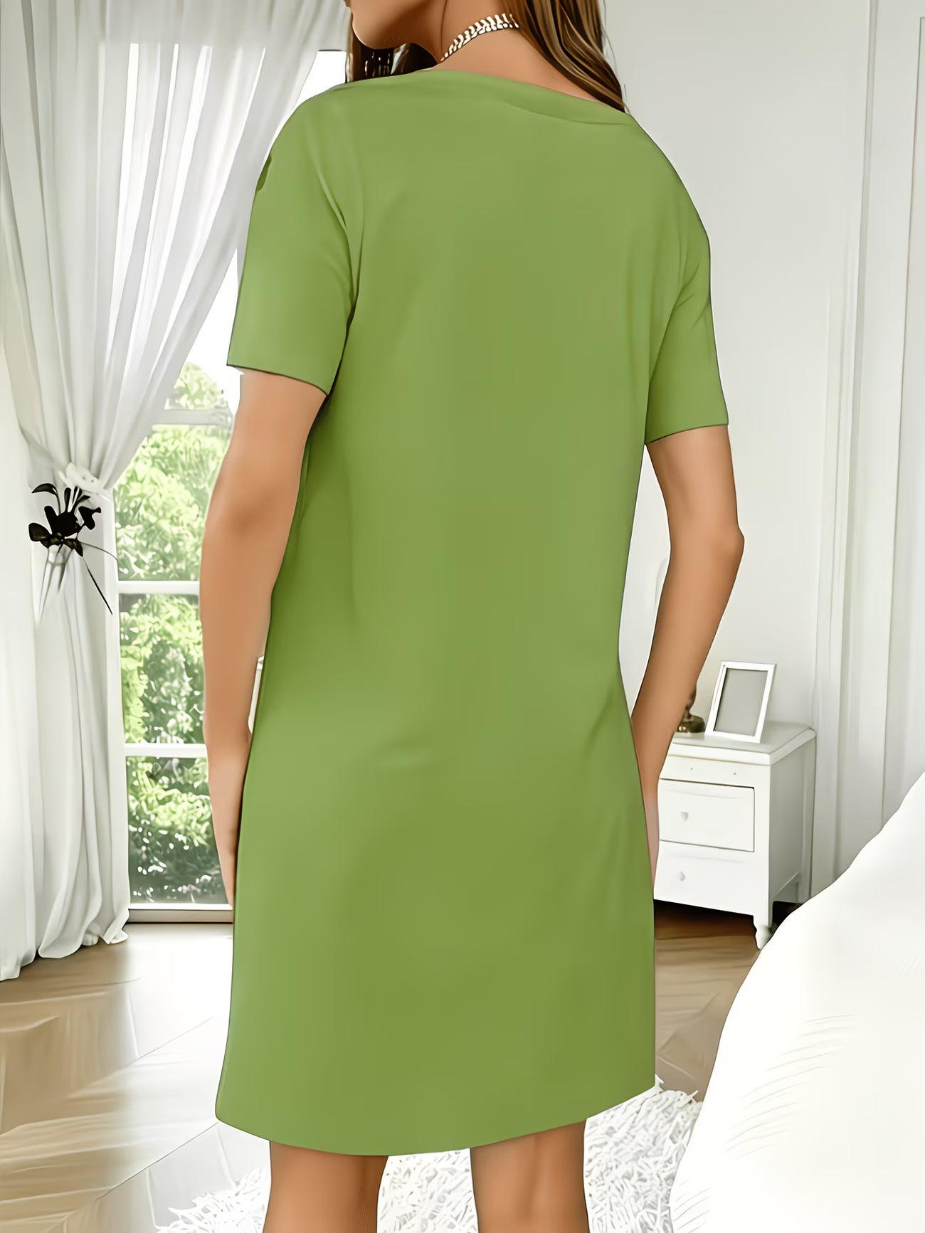 - T-shirt style neckline — effortlessly wearable