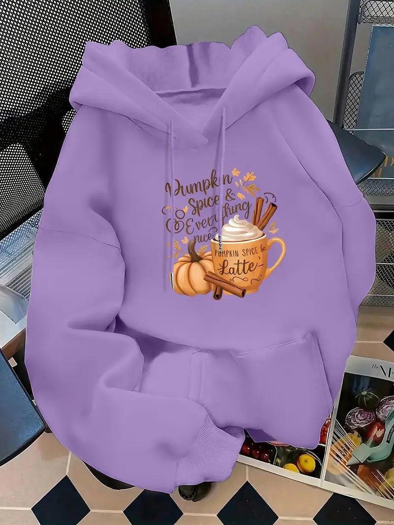 Pumpkin Spice Latte Graphic Print with Kangaroo Pocket,