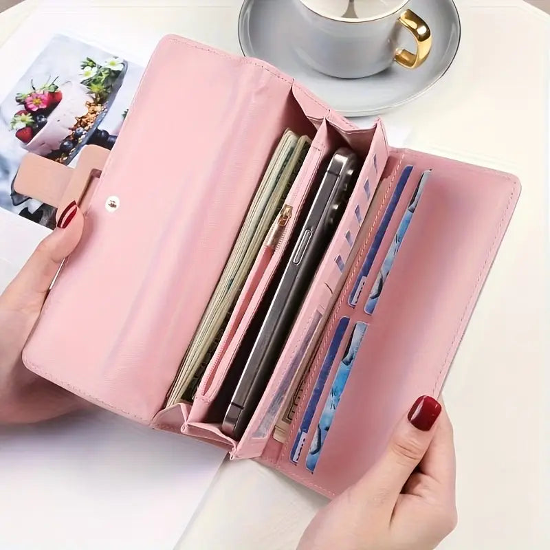 Large Capacity Clutch with Multiple Card Slots, Coin Purse & Secure Buckle Closure, Personalized Name Option
