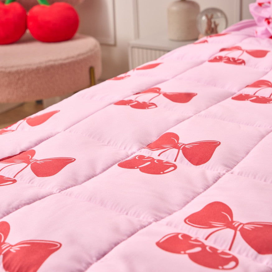 Kids Cherry Bow Print Weighted Blanket, Pink/Red - 3kg