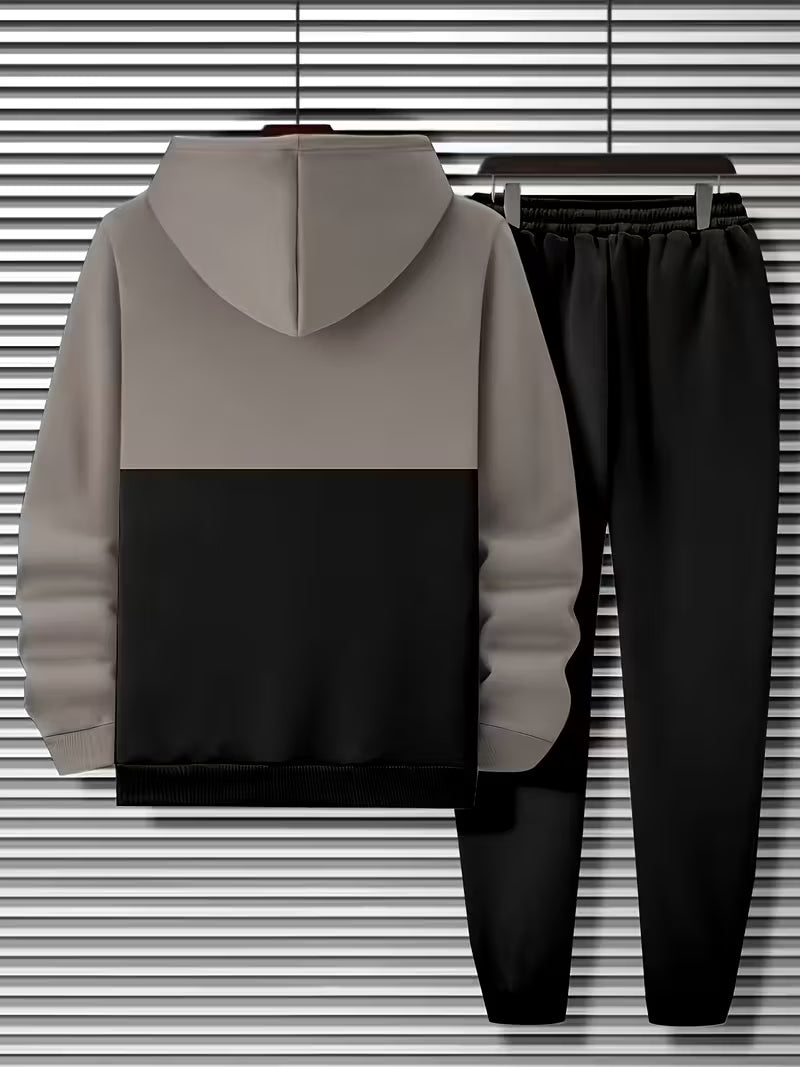 Men's Autumn and Winter Color Block Plaid Print Hoodie,set