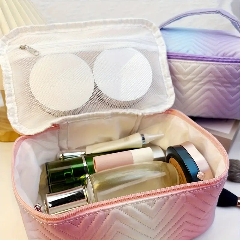 Personalized Gradient Color Quilted Makeup Bag with Embroidered Name