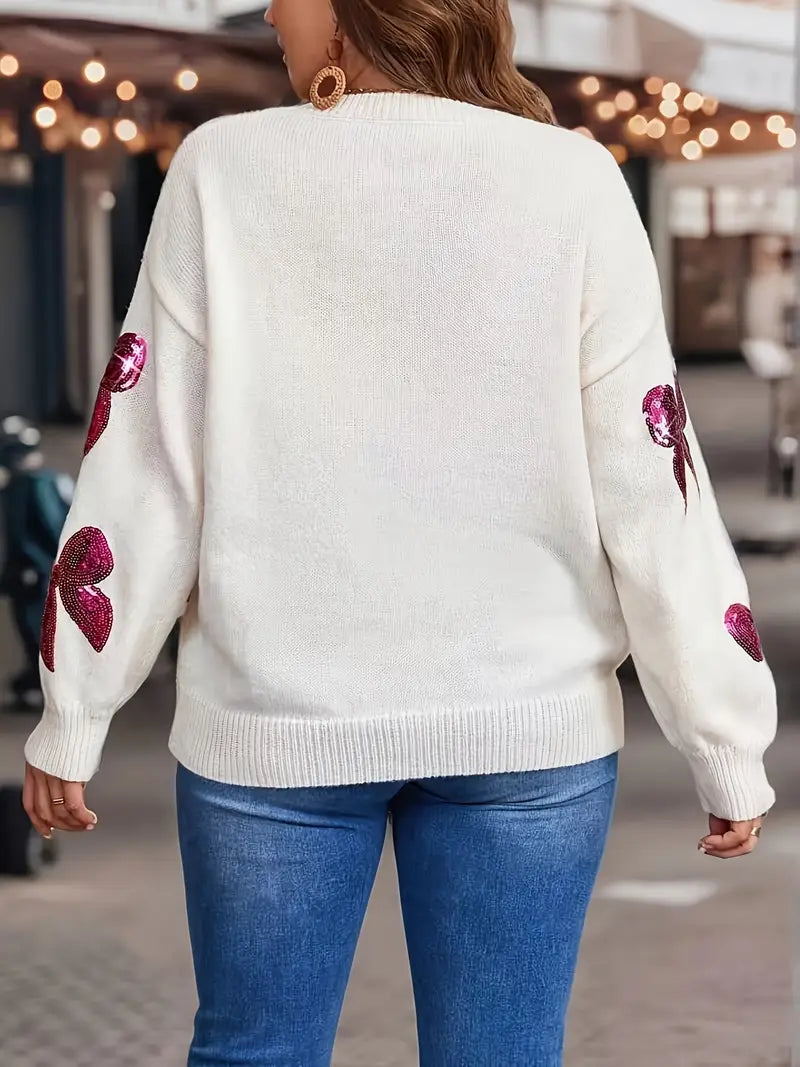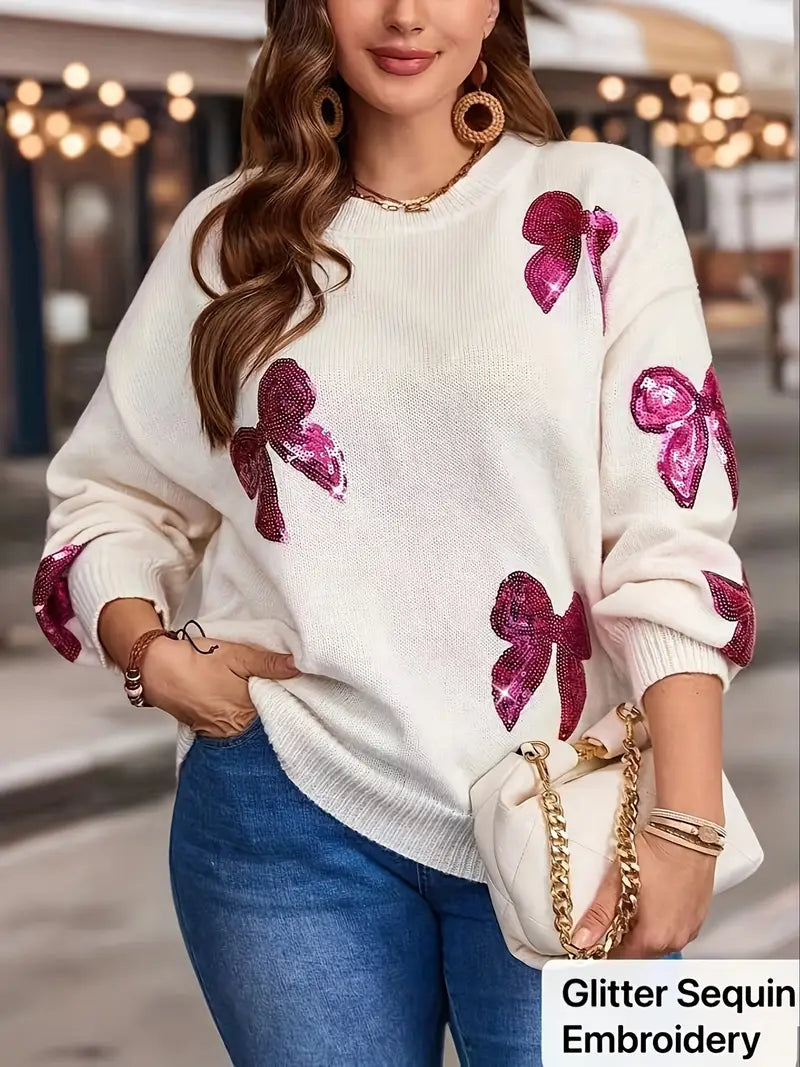 Embroidery Sweater Long Sleeve Round Neck Pullover Soft Comfortable