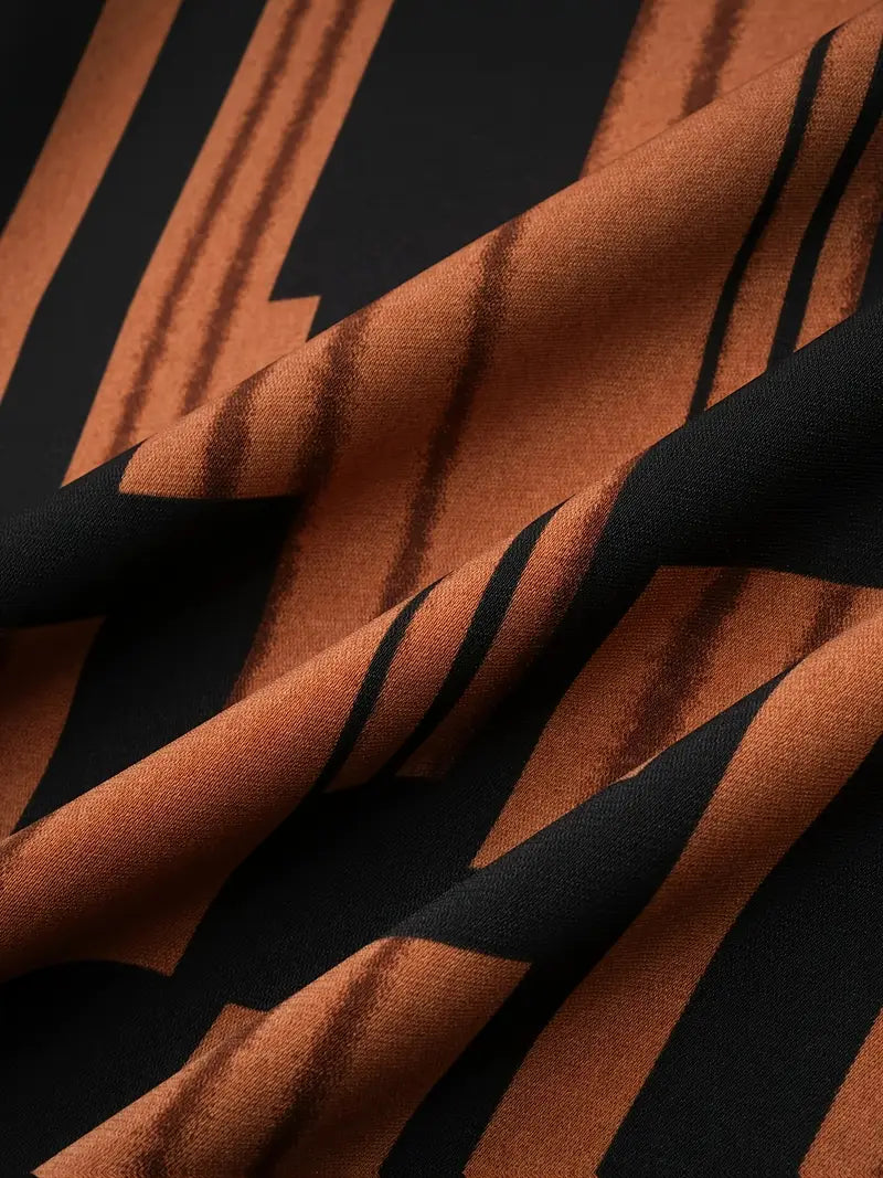 Geometric Pattern, Long Sleeve, Button-Up Shirt in Brown & Black,