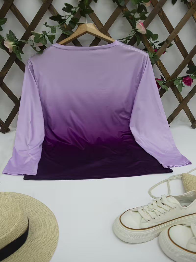 Embrace elegance and comfort with our stunning butterfly print v-neck long sleeve t-shirt, designed specifically for plus-size women. This beautiful top features delicate butterfly motifs that add a touch of whimsy to your wardrobe.