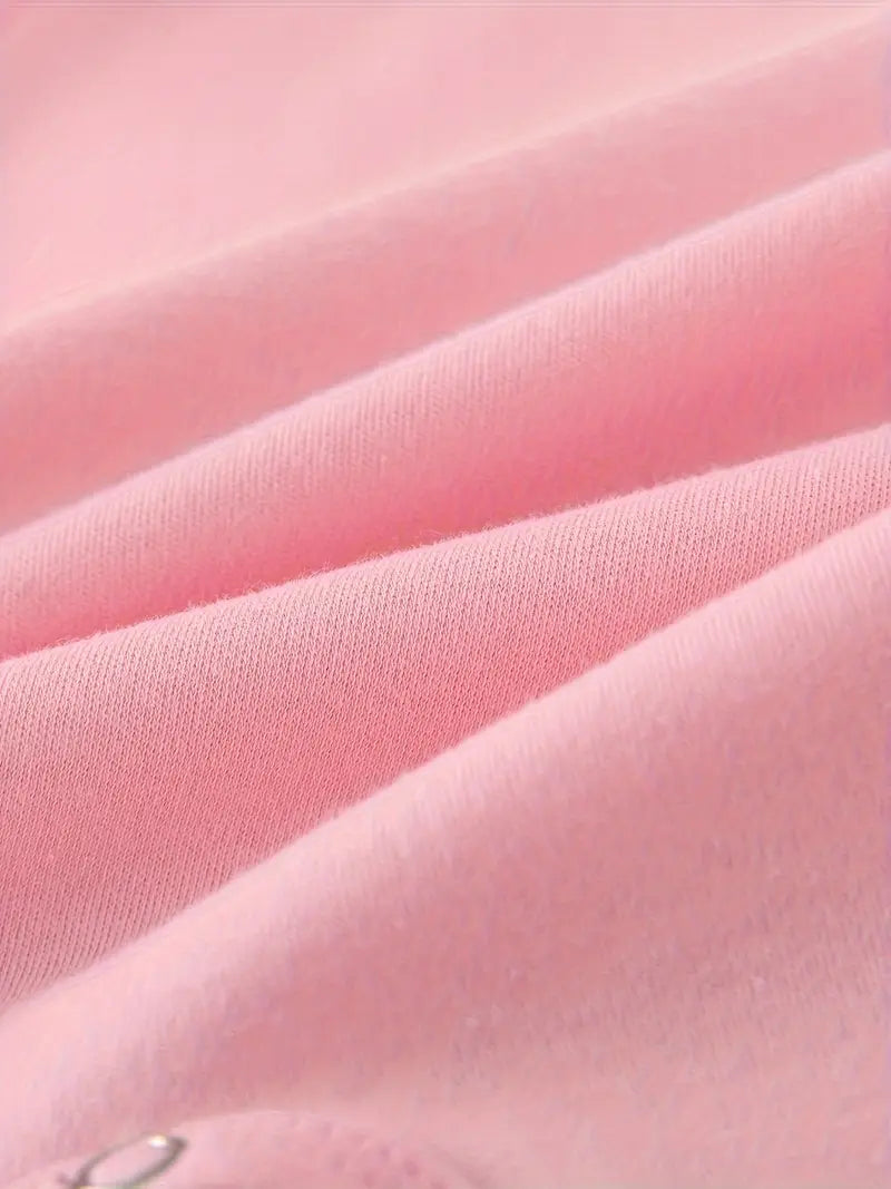 with Crown & Bow Tie Design, Soft Pink Long-Sleeve Jumpsuit for All-Season Comfort,