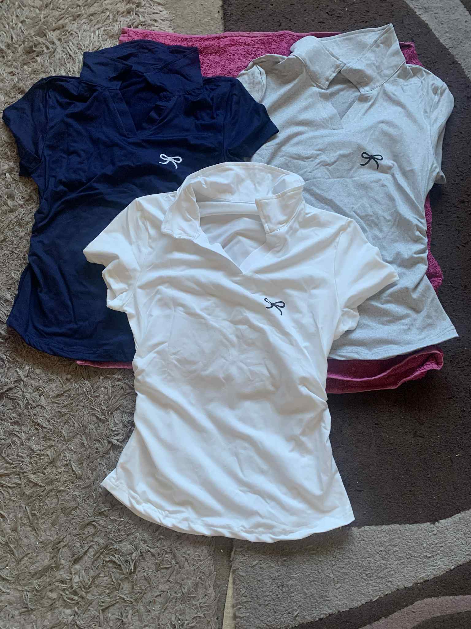 Three-Piece Bow Print Shirt with Ruffle Hem and Waist-Cinching