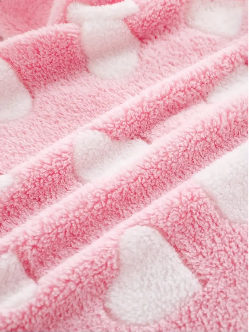 Pink Cute Hooded Onesie with Heart Design, Thickened Winter Jumpsuit,