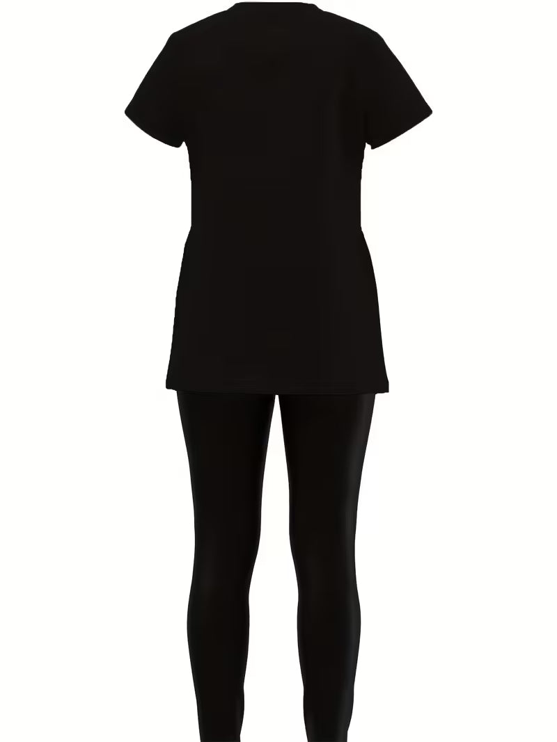 Women'S Casual Printed Short Sleeve Top and Tight Pants Set