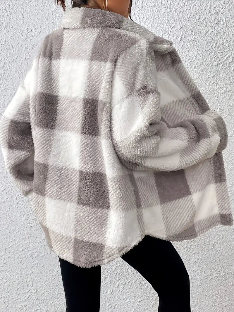 Checkered Coat with Front Button Closure, Long Sleeve Winter Jacket