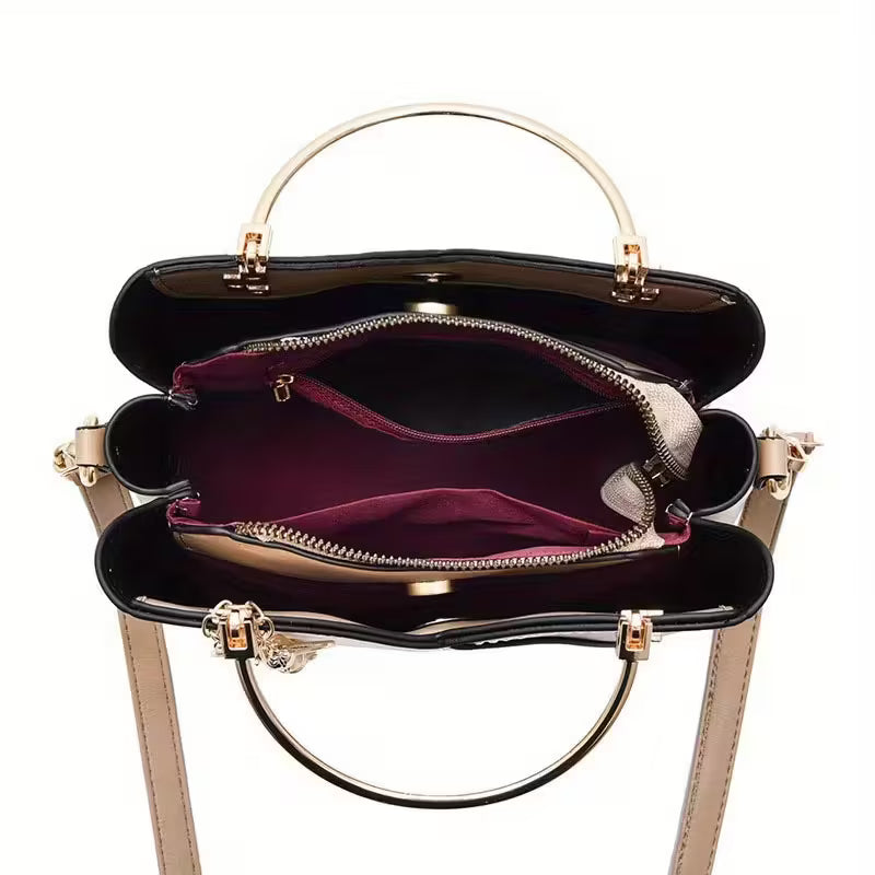Pink & White Color-Block, Golden-Tone Hardware, Zipper Closure, Large Capacity Convertible Shoulder Bag